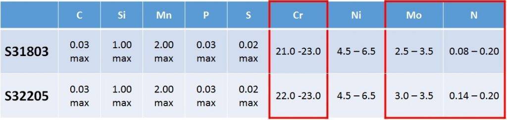 UNS S31803和UNS S32205之間的區(qū)別